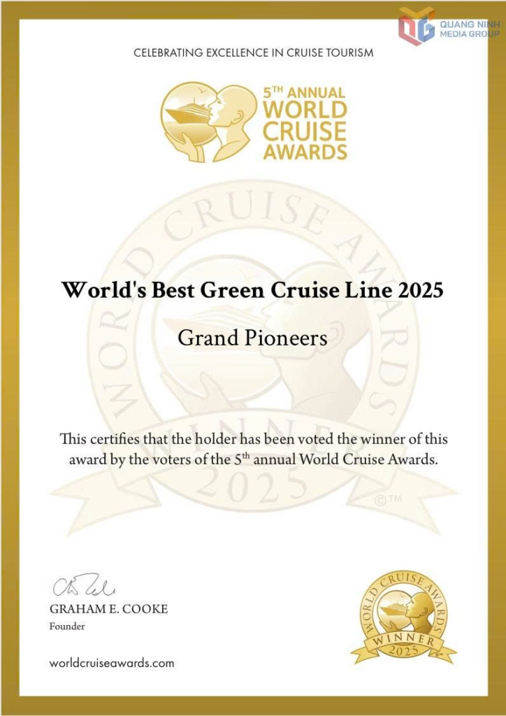 With this prestigious double win, Grand Pioneers has solidified its position as a pioneer in the sustainable marine tourism industry, not only in Vietnam but globally. The company commits to continuing to set sail, undertaking the “Legacy journey” with the highest responsibility, providing the most wonderful experiences for guests, and preserving the green pearl of Ha Long for future generations.