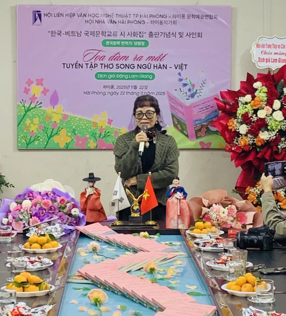 Văn học, tuy chậm hơn ngoại giao nhưng lại có thể chạm đến nơi sâu thẳm nhất của con người, đã tìm thấy một “Mùa gieo hạt” mới đầy ý nghĩa tại Hải Phòng. Chiều ngày 22 tháng 11 năm 2025, vào lúc 14 giờ, tại không gian văn hóa trang trọng của trụ sở Hội Liên hiệp Văn học Nghệ thuật Thành phố Cảng, buổi Giao lưu và Ra mắt tập thơ song ngữ Hàn – Việt đã diễn ra, do Hội Liên hiệp VHNT và Hội Nhà văn Hải Phòng đồng tổ chức. Sự kiện này, vượt lên trên khuôn khổ một buổi giới thiệu sách thông thường, đã trở thành biểu tượng cho tình hữu nghị và sự đồng điệu của tâm hồn hai dân tộc.