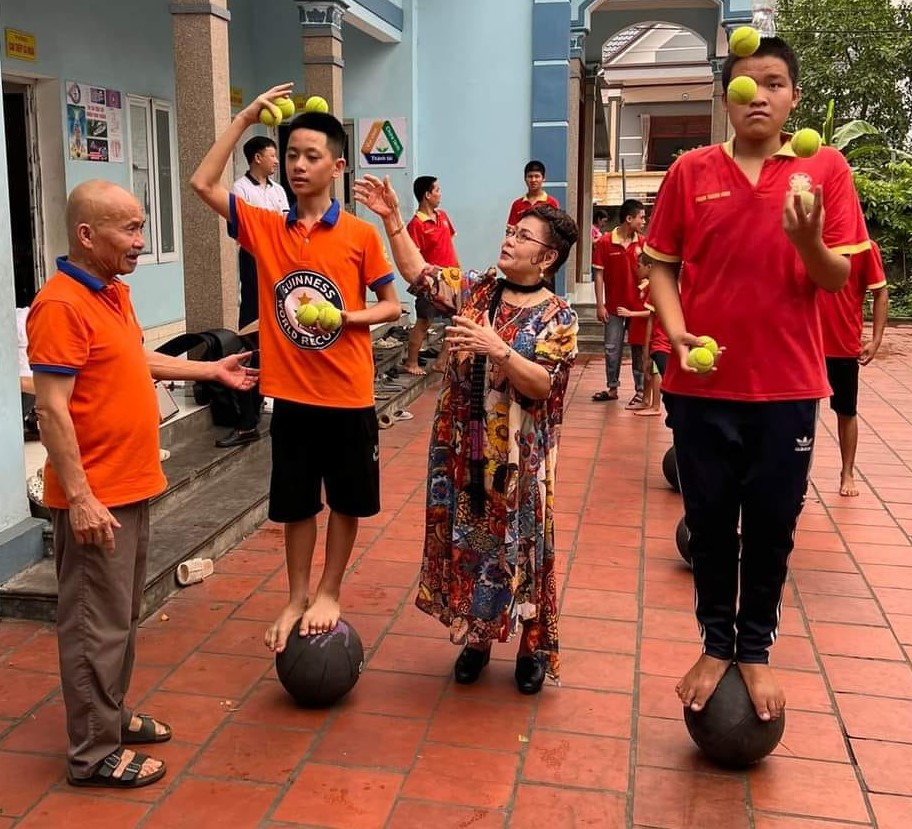 Phạm Thành Nam, một học viên tự kỷ, vừa được Tổ chức Kỷ lục Guinness Thế giới chính thức ghi nhận kỷ lục: “Thời gian lâu nhất vừa tung hứng ba đồ vật vừa đứng trên một quả bóng với một đồ vật trên đầu”.