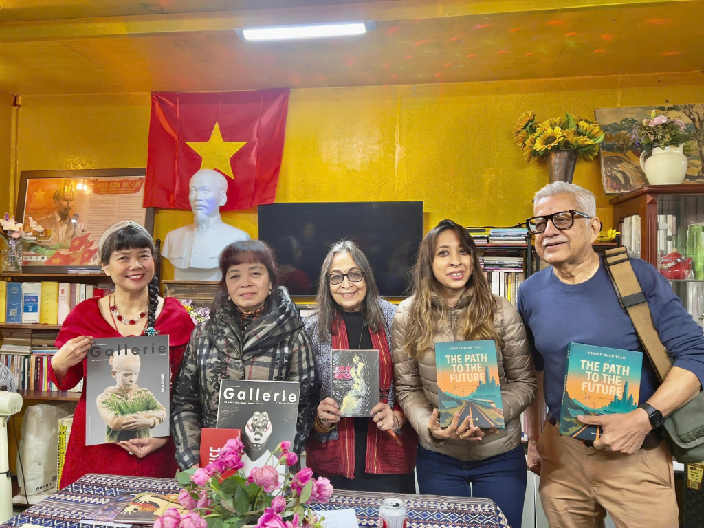 Tại đây, đoàn nghệ sĩ Ấn Độ cũng được tận mắt chiêm ngưỡng một “bảo tàng nhỏ” lưu giữ những kỷ vật và bộ sưu tập tranh, điêu khắc quý giá của dòng họ Bàng. Những tác phẩm này là sự kết hợp giữa truyền thống gia đình nhiều đời và sự sáng tạo bền bỉ suốt một đời của nữ sĩ Bàng Ái Thơ cùng các em của bà như họa sĩ Bàng Sĩ Trực, Bàng Phương Chính…