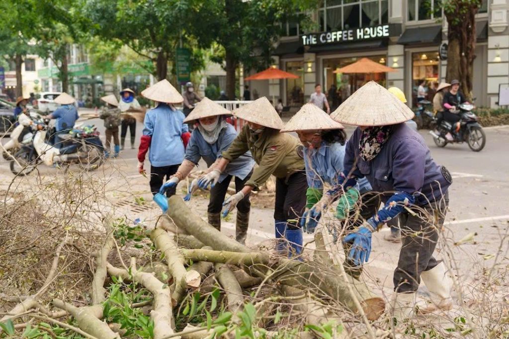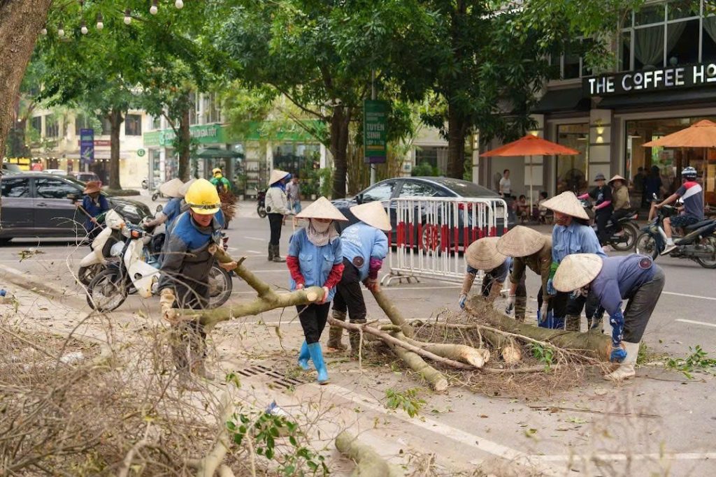 Tiếng máy cưa vang khắp nơi từ sáng sớm đến đêm khuya. Mỗi tuyến phố được dọn dẹp sạch sẽ, phong quang, mỗi hàng cây được dựng lại là một bước tái sinh của thành phố xanh.