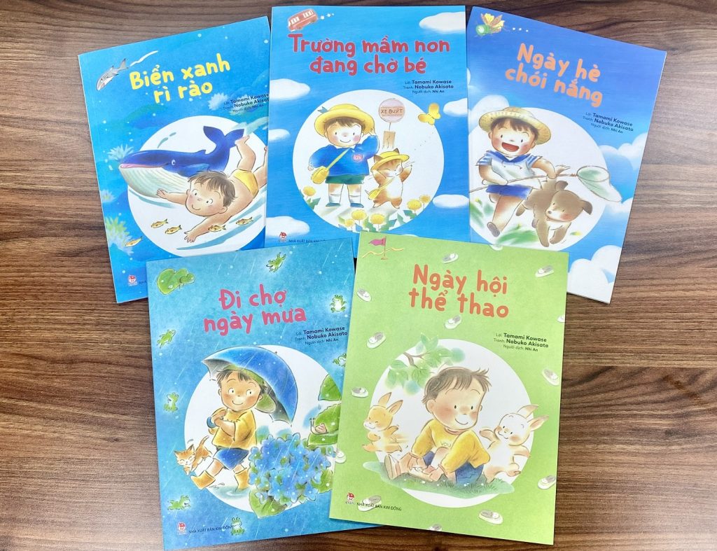 Mẫu giáo là độ tuổi các em nhỏ bắt đầu nhìn ngắm thế giới qua lăng kính rất riêng, đầy trong veo và ngây thơ. Thế giới ấy được thể hiện rõ nét qua 5 cuốn truyện nhỏ của hai tác giả Nhật Bản Tamami Kowase và Nobuko Akisato: Biển xanh rì rào, Ngày hội thể thao, Ngày hè chói nắng, Đi chợ ngày mưa, Trường mầm non đang chờ bé. Nhân vật chính là cậu bé Yu trong sáng, đáng yêu như những bạn nhỏ đồng trang lứa. Những tình huống đời thường ấy lại được tác giả chen vào những tình tiết bất ngờ đáng yêu, giống như cách các em quan sát thế giới này. Những câu chuyện thú vị ấy được minh hoạ bằng những bức tranh có gam màu mộng mơ, ngọt ngào mang phong cách như những tấm bưu thiếp cổ điển.