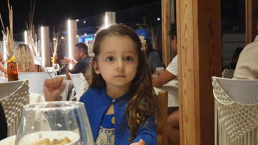 I hold the little Sharon in my arms,