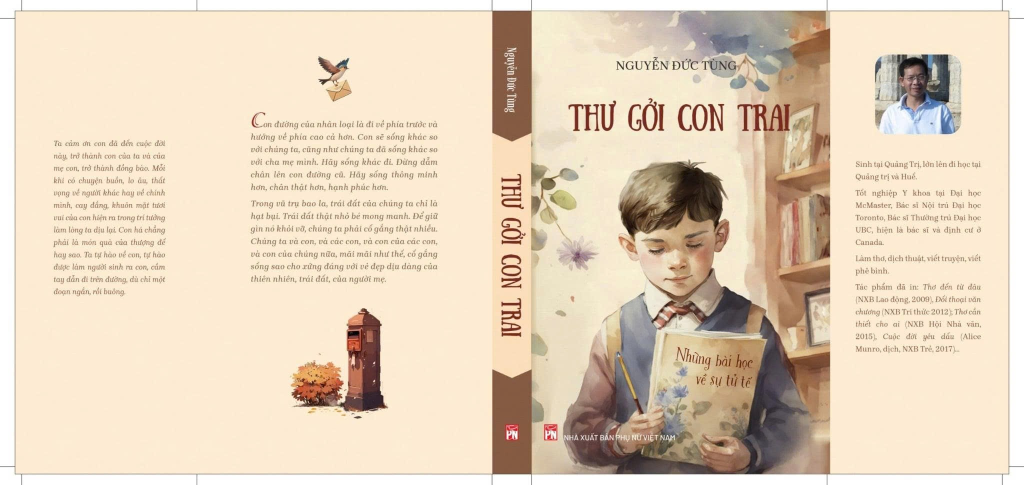 “Thư gửi con trai” trước hết là một cuốn sách rất nhân văn và gần gũi. Những trang sách mở ra như cách một người cha ngồi xuống, chậm rãi, để kể cho con mình nghe về đời sống, không phải đời sống lý tưởng, mà là đời sống đã đi qua, với những gì đã mất, đã giữ, đã hiểu và vẫn còn đang học cách hiểu. Trong bối cảnh hiện đại, nơi mọi lời khuyên dễ trở thành khẩu hiệu, mọi triết lý dễ bị giản lược thành những câu trích dẫn ngắn, cuốn sách này chọn một con đường khác: kể chuyện, hồi tưởng, suy nghĩ thành tiếng, và chấp nhận cả sự không trọn vẹn của ký ức dưới lớp áo văn chương mượt mà đầy chất thơ của nhà văn, bác sĩ Nguyễn Đức Tùng.