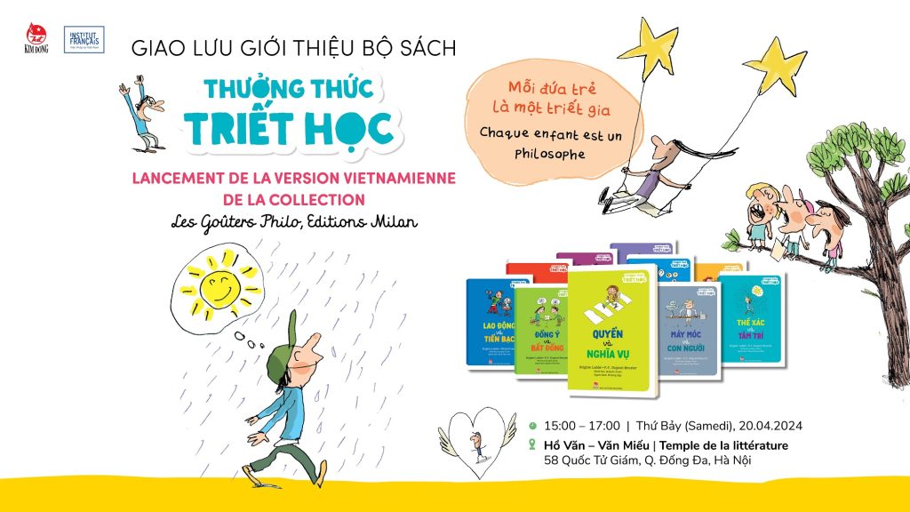 Nhân dịp bộ sách Thưởng thức triết học ra mắt độc giả Việt Nam, Viện Pháp tại Việt Nam và Nhà xuất bản Kim Đồng hân hạnh tổ chức chương trình giao lưu và ra mắt bộ sách với chủ đề Mỗi đứa trẻ là một triết gia. Sự kiện có sự tham dự của Tiến sĩ Văn học Trần Văn Công, Trưởng khoa tiếng Pháp – Đại học Hà Nội; Dịch giả Phùng Hồng Minh, cùng người điều phối – Diễn giả Phan Đăng. Bộ sách Thưởng thức triết học nằm trong chương trình đào tạo dịch giả trẻ của Viện Pháp, TS. Trần Văn Công và Dịch giả Phùng Hồng Minh là một trong những chuyên gia đào tạo cho các dịch giả trẻ trong khuôn khổ chương trình này.